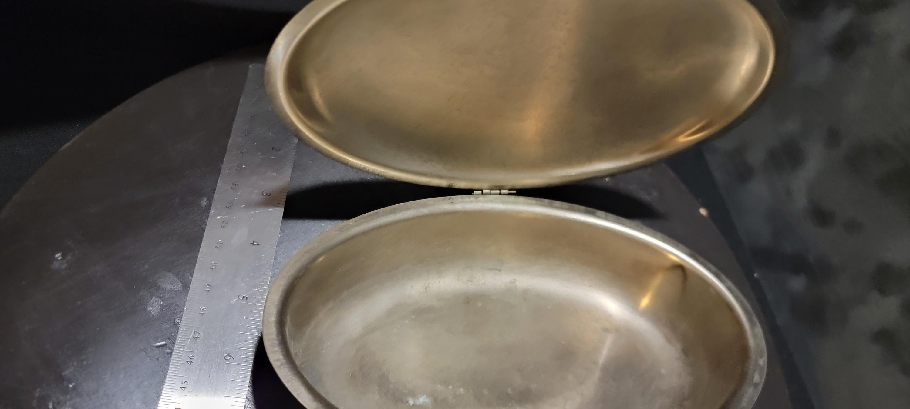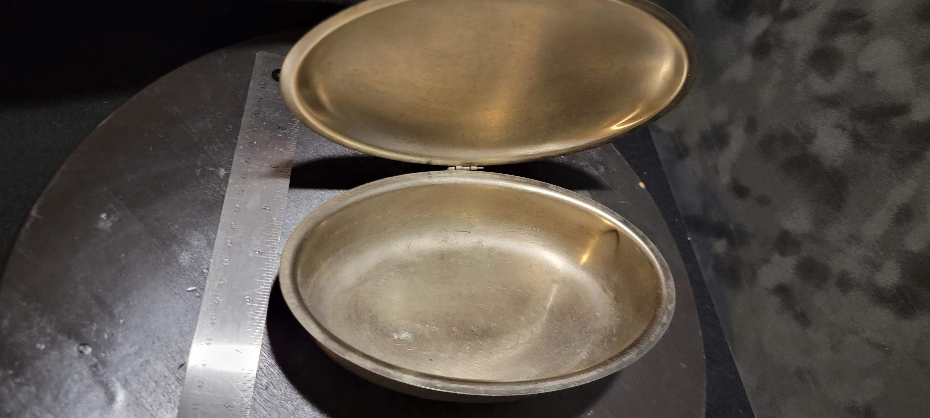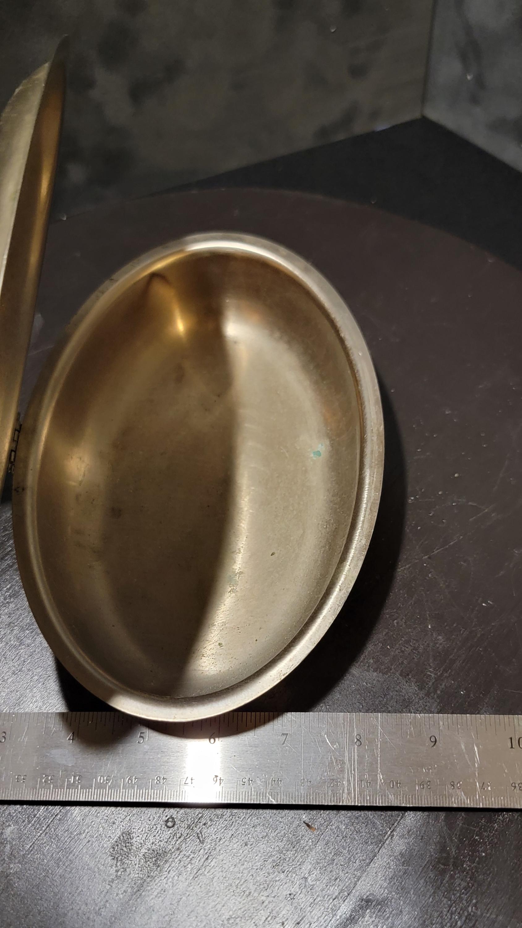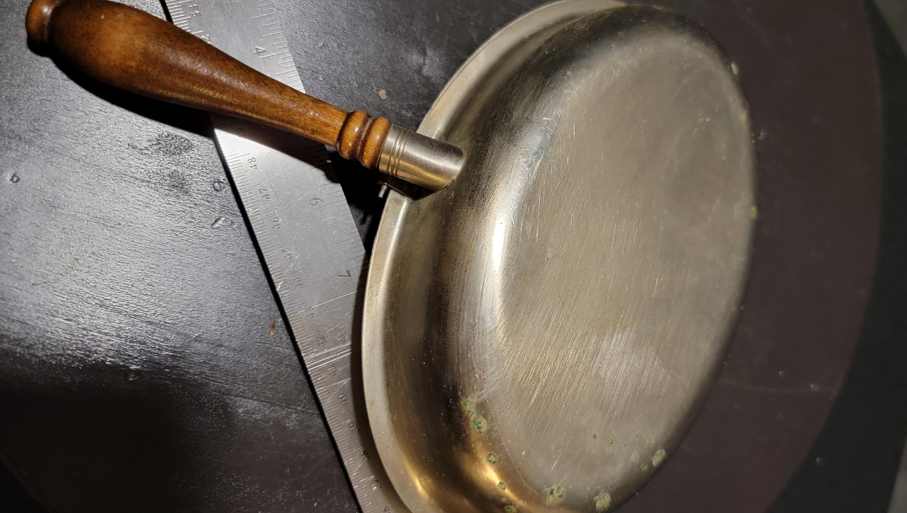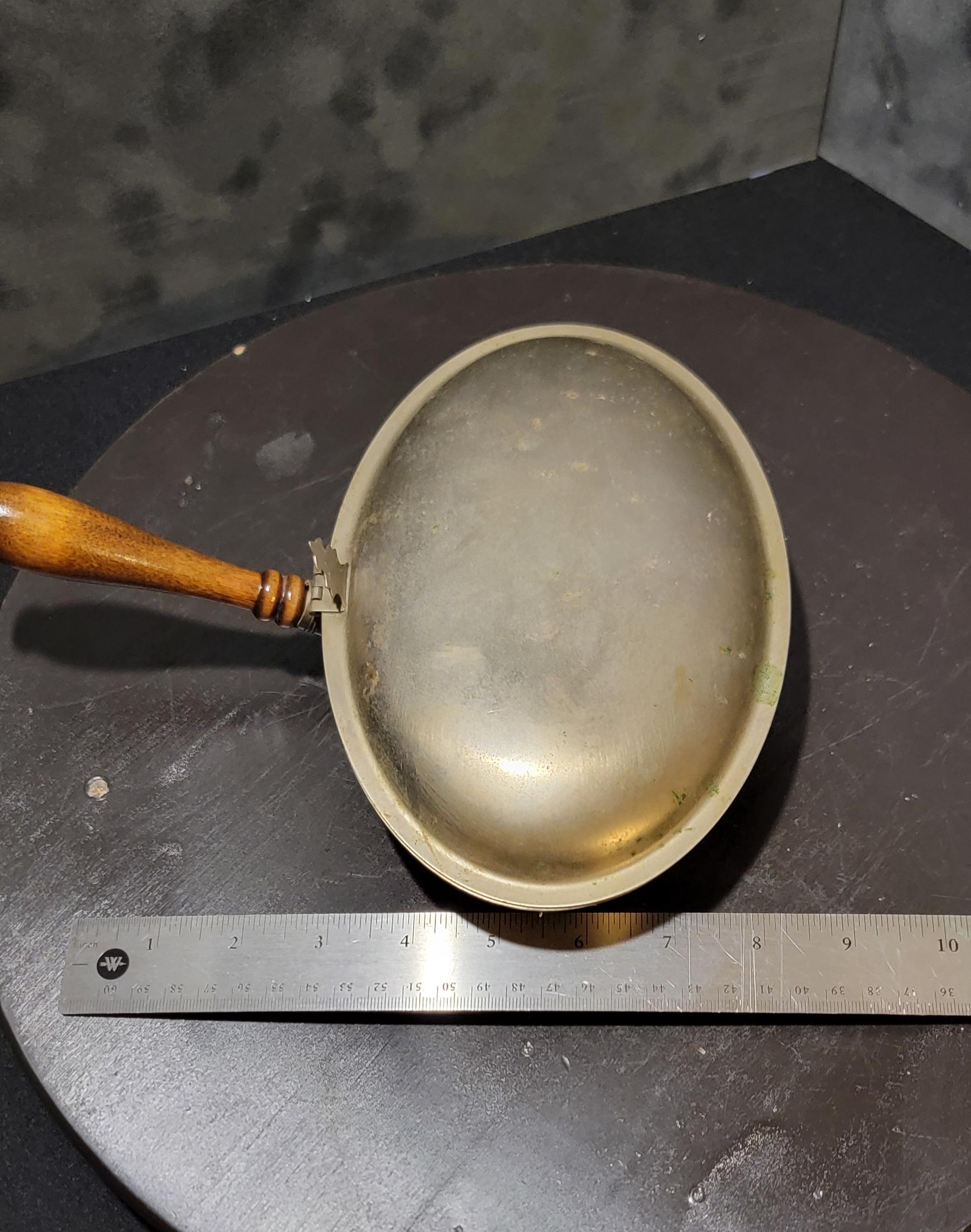 This is in good vintage condition with light surface wear and a39.95 natural patina consistent with age. A few small green oxidation spots on the underside (see photos). The handle is solid and secure. Adds to its authentic antique charm.