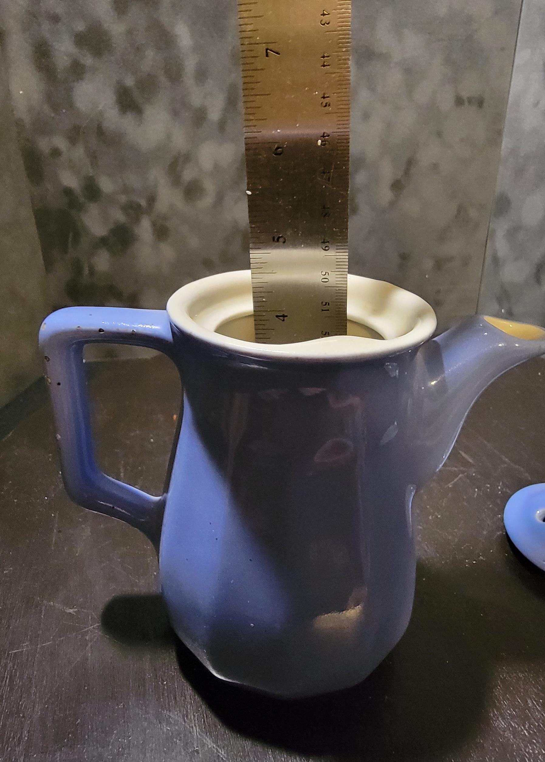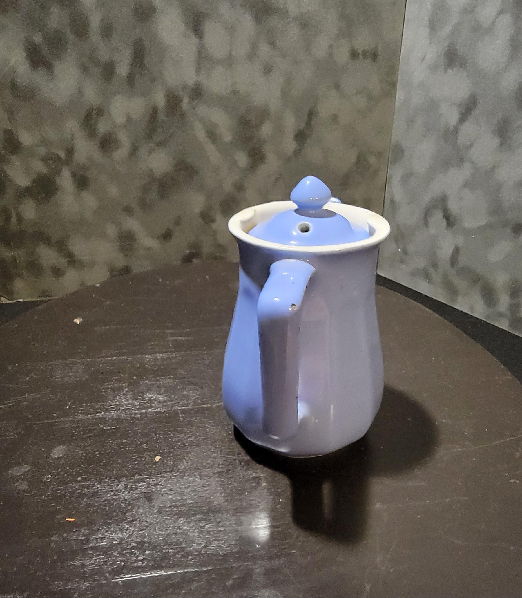 Add a touch of charm to your kitchen with this vintage ceramic teapot in a delightful periwinkle blue glaze. Compact and practical, this small teapot is perfect for brewing just enough for one or two servings of tea, making it ideal for daily use, cozy tea times, or as a cottagecore-style display piece.