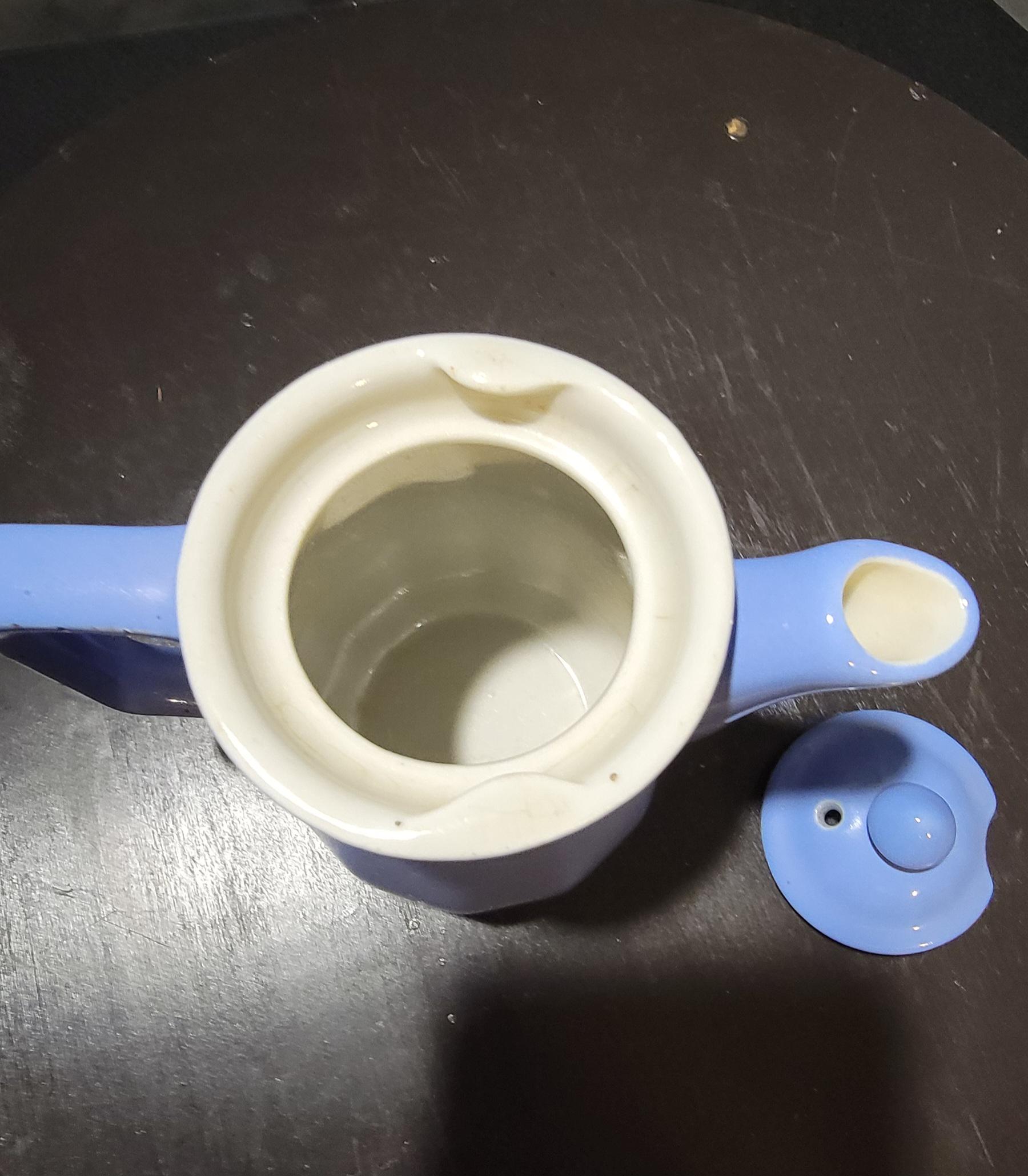 This teapot is ideal for tea lovers, collectors of vintage ceramics, or anyone looking to add a splash of periwinkle blue charm to their home.