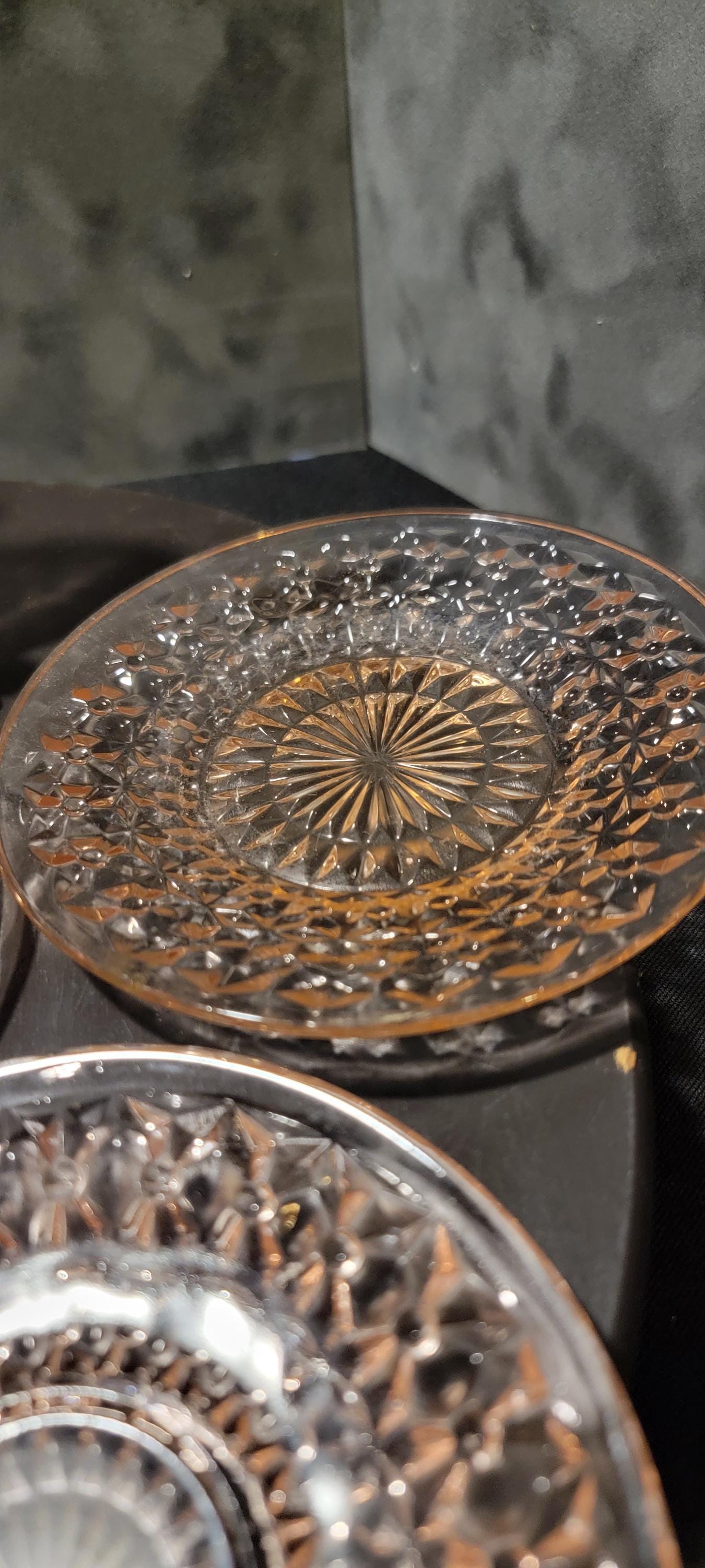 Pattern: Pressed diamond & starburst motif (similar to Jeannette or Federal Glass styles)