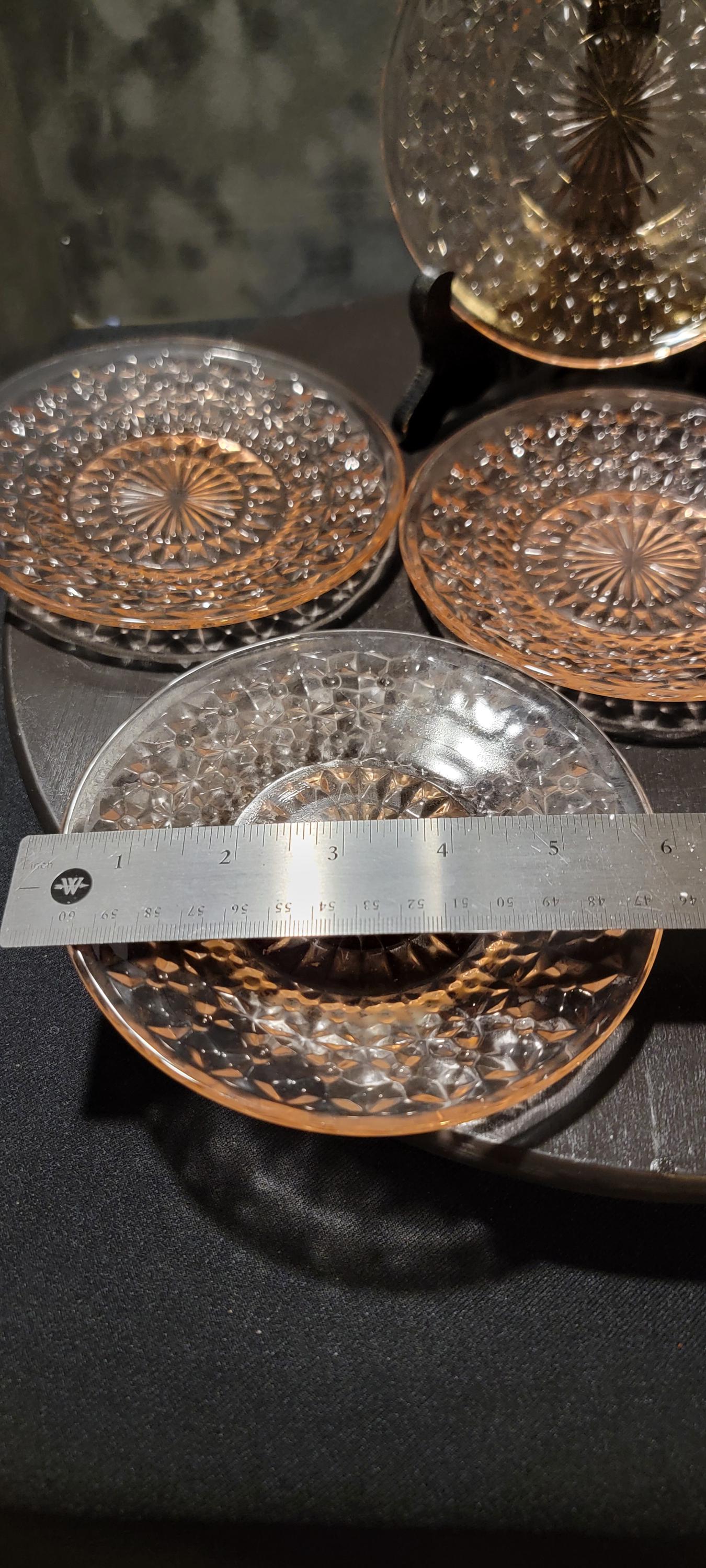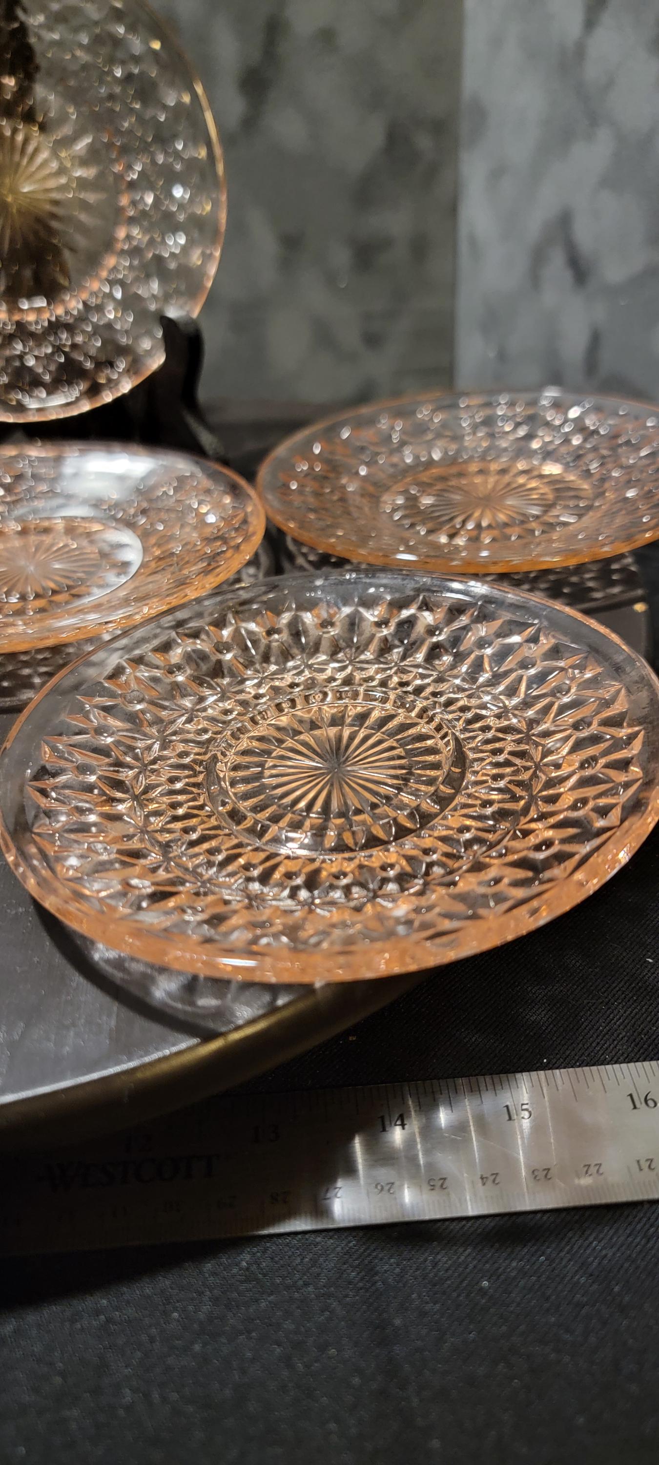 These plates are perfect for desserts, display, or adding to a Depression glass collection. Use them for special occasions or display them as a set of vintage pink treasures.