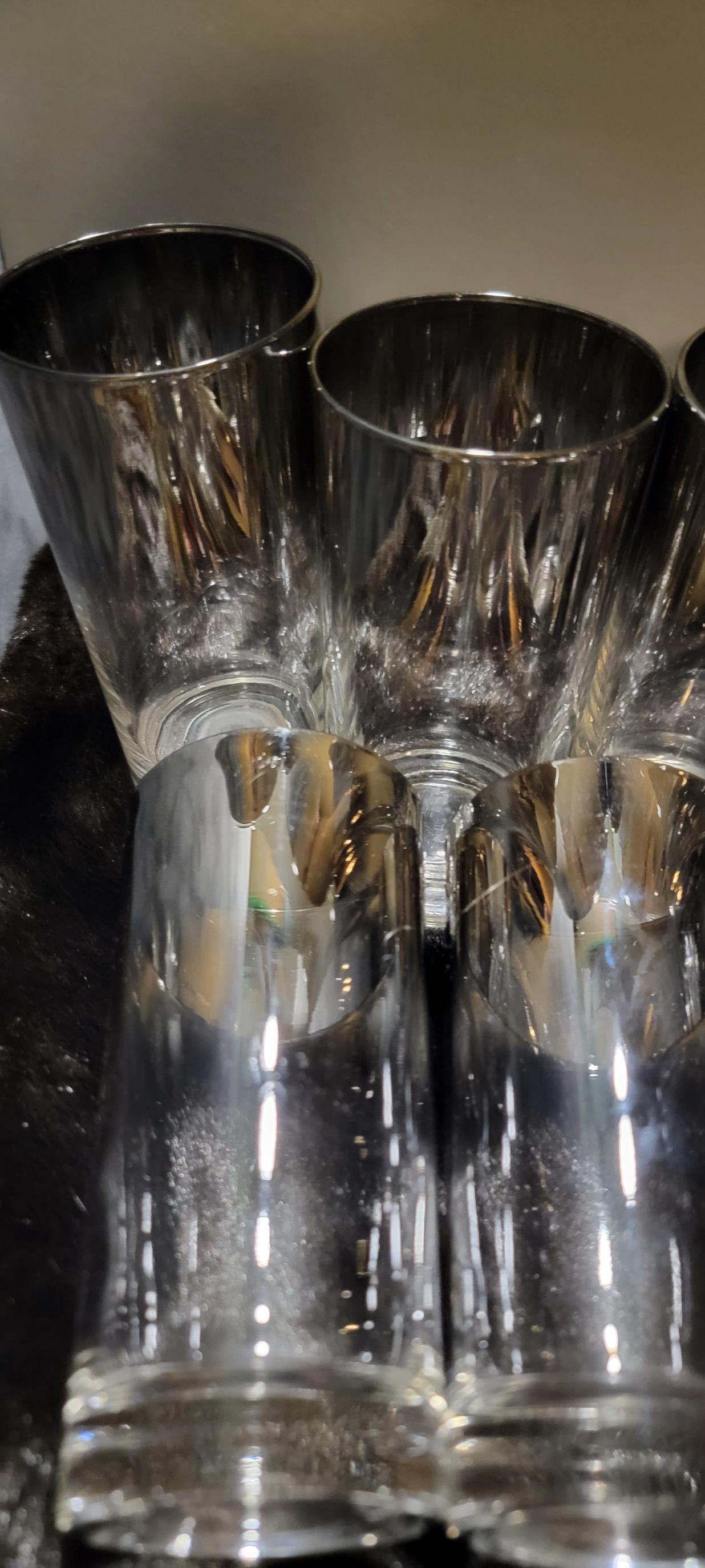Bring timeless mid-century sophistication to your next gathering with this rare 7-piece set of Vitreon Queen’s Lusterware silver-fade highball glasses — the kind of vintage sparkle that never goes out of style.