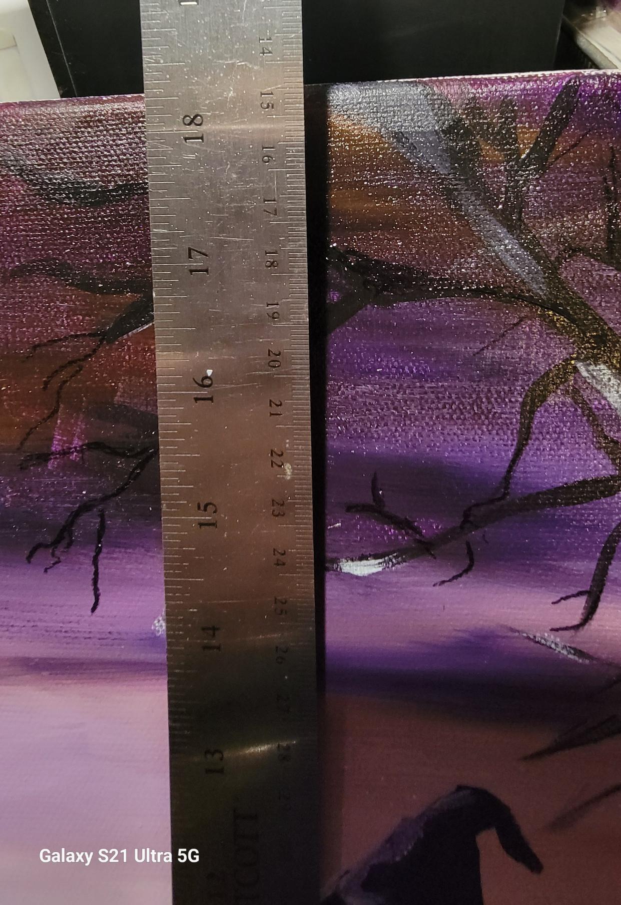 This hand-painted original acrylic artwork features expressive texture and glowing highlights that come alive under natural or soft light. Each figure tells her own story — a moment of unity, ritual, and power beneath a fading sky.