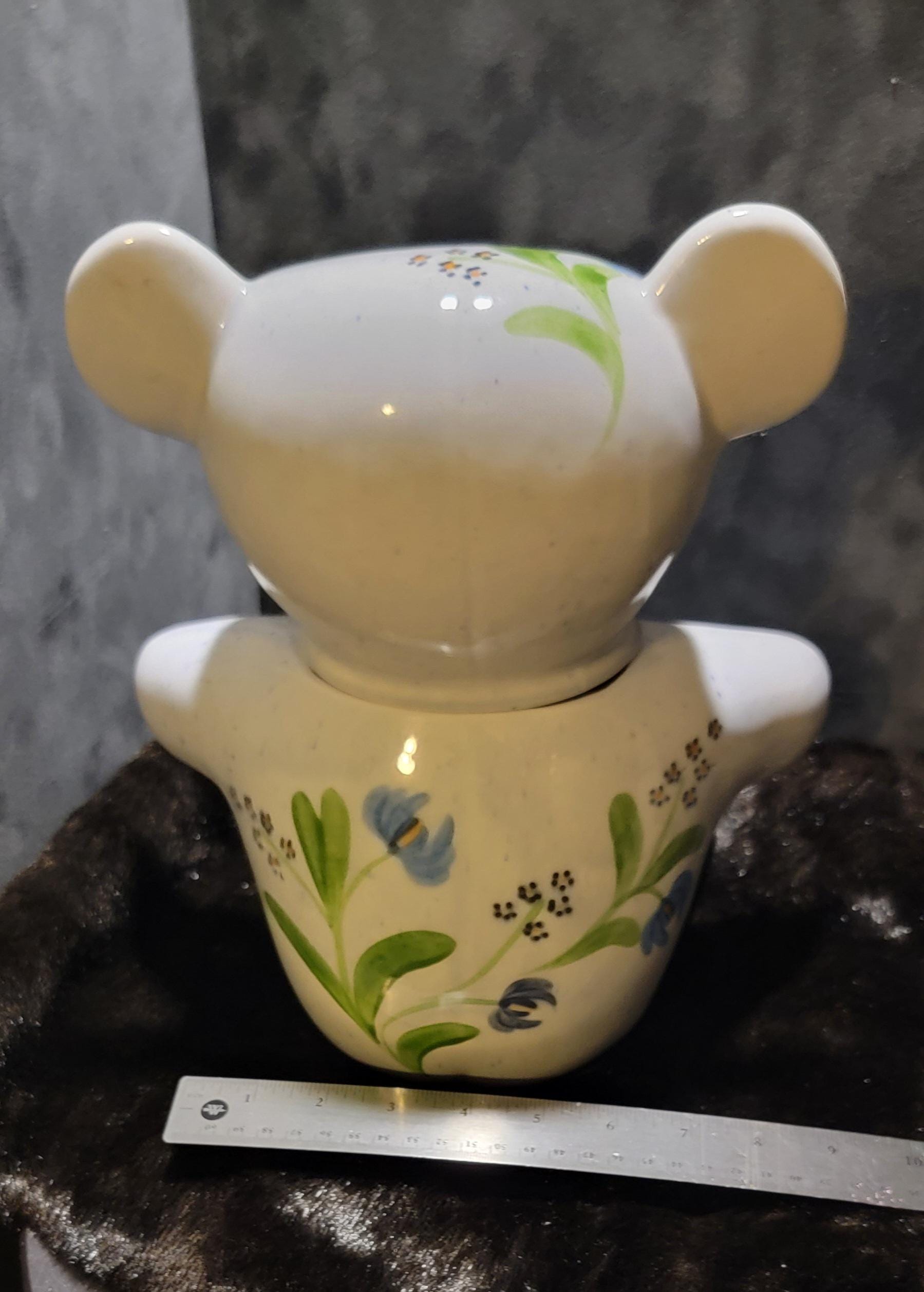 The bear’s expressive eyes, soft pastel detailing, and glossy glaze make it a perfect addition to any vintage kitchen, cookie jar collection, or nursery display. A wonderful blend of functionality and nostalgia!