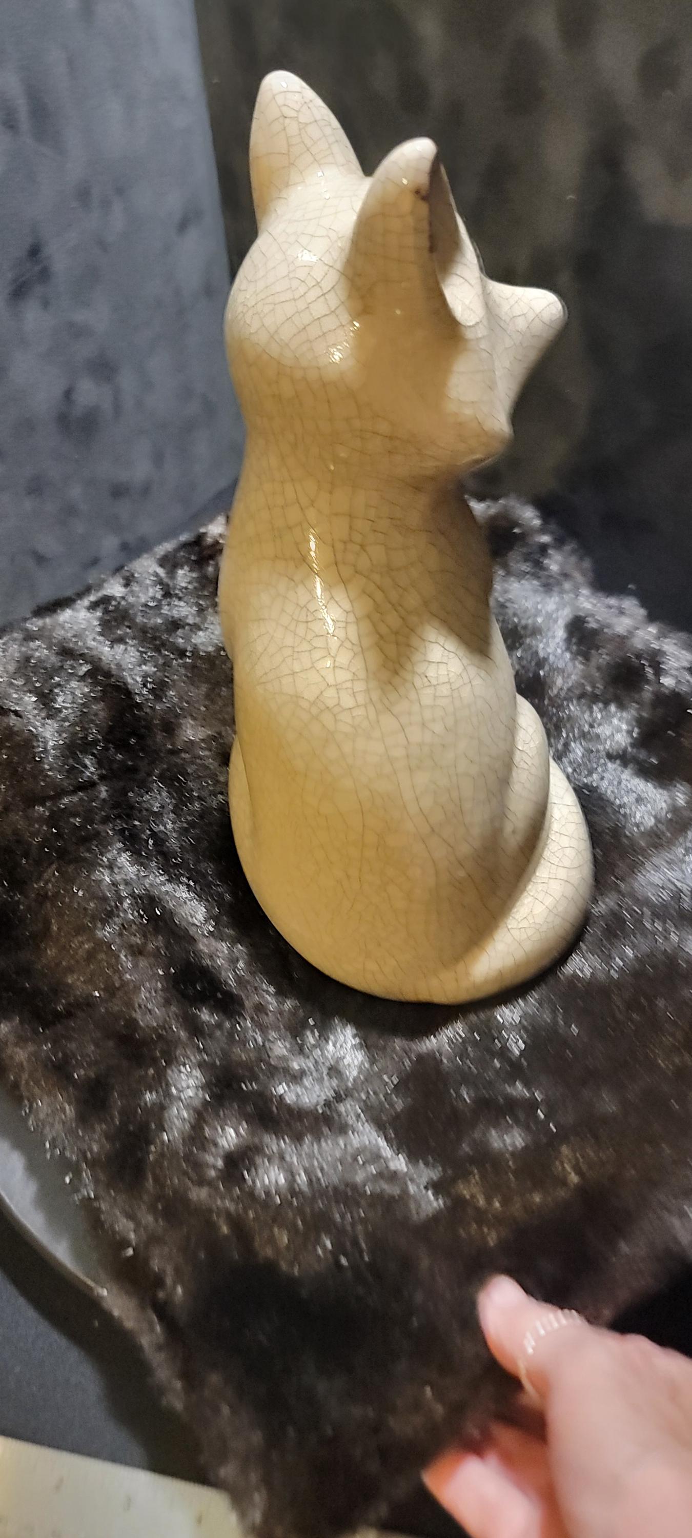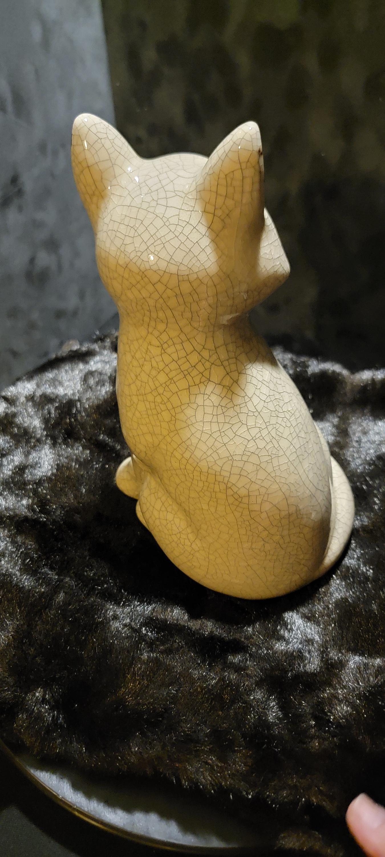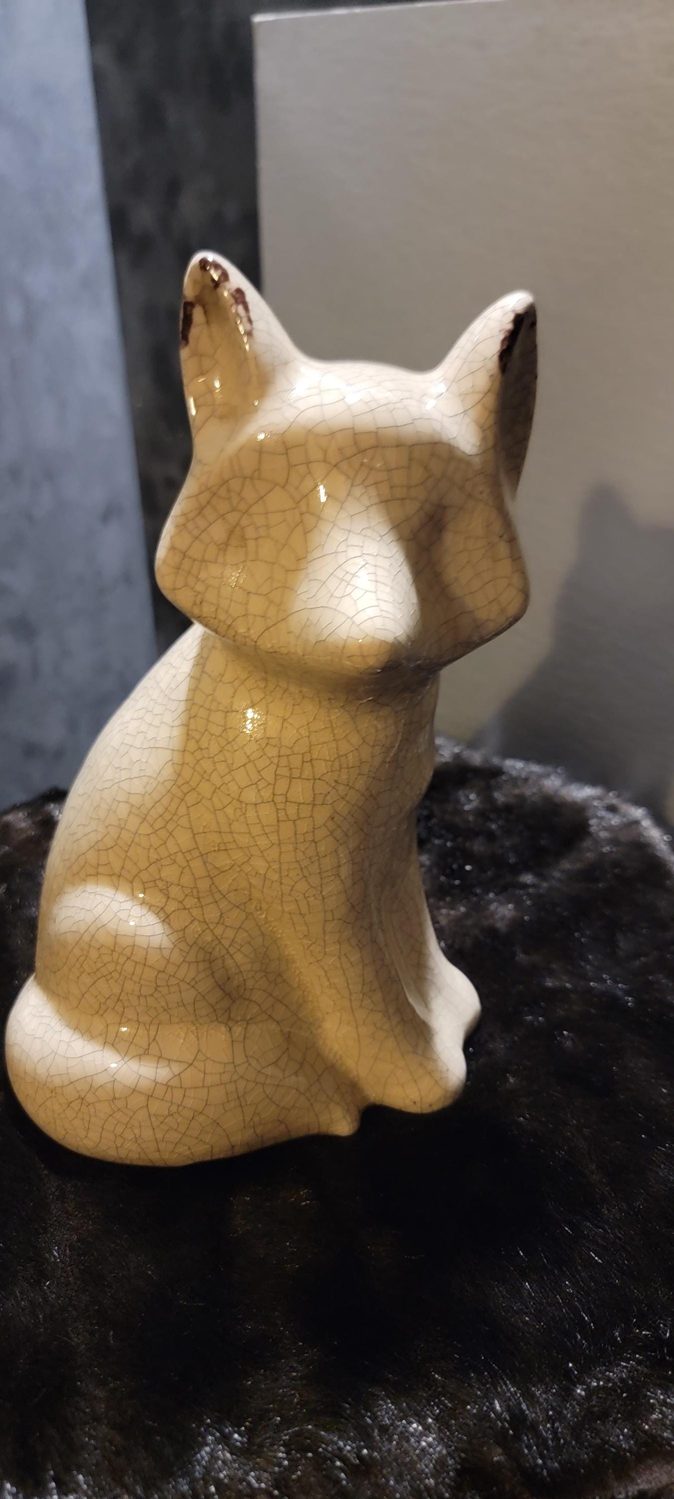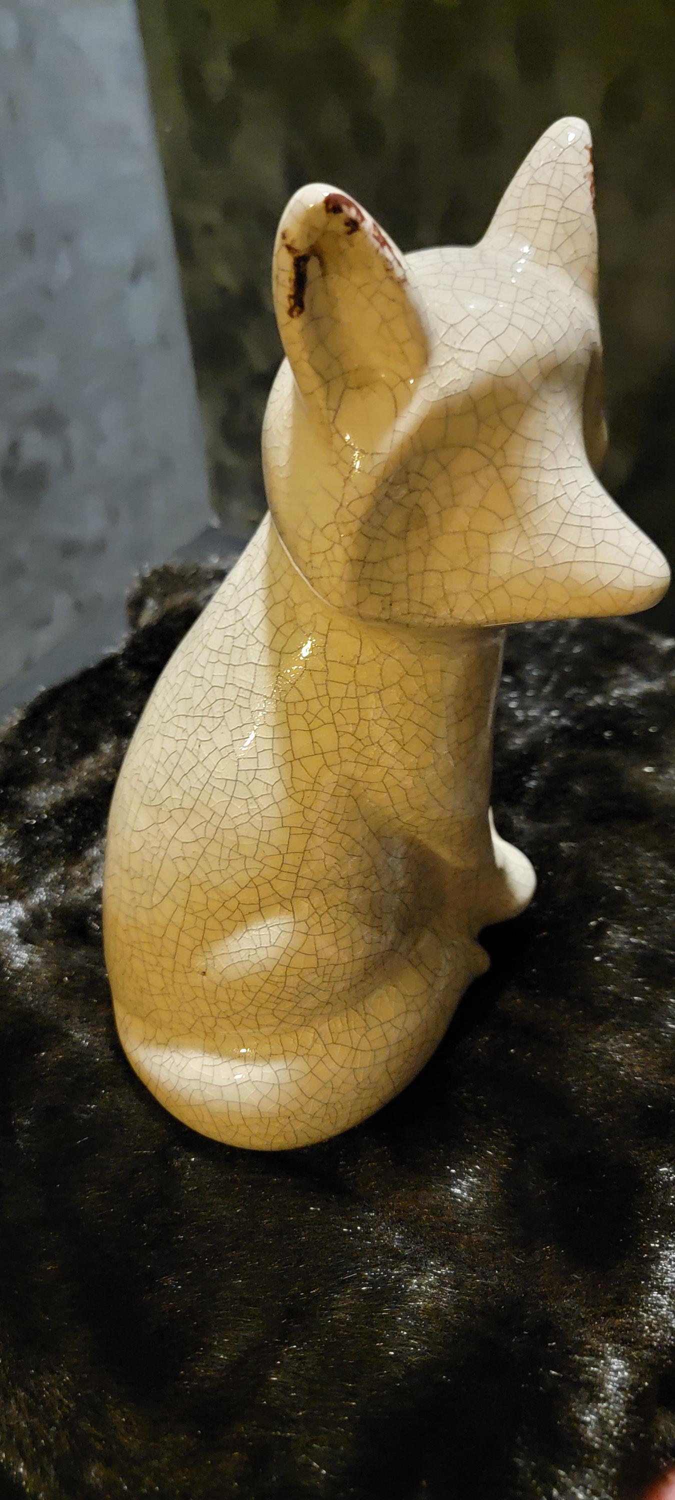 This beautiful vintage ceramic fox figurine features a soft ivory crackle glaze that enhances its timeless charm. With its stylized, minimalist form and warm neutral tones, this fox embodies mid-century modern sophistication — elegant, serene, and subtly expressive.