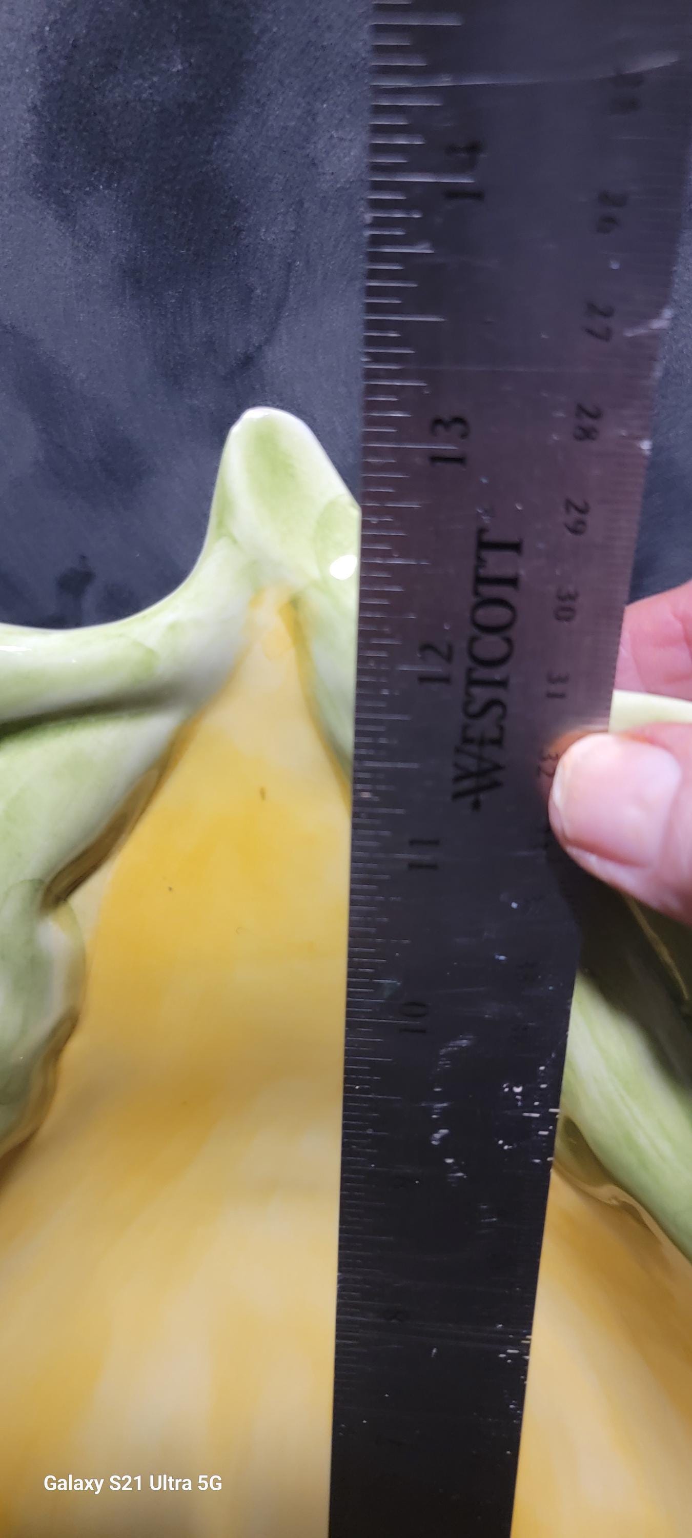 This beautiful vintage pear-shaped ceramic serving dish, made in Italy, features a softly shaded yellow glaze with sculpted green leaves forming the stem. Italian ceramics from the 1970s–1980s are known for their hand-finished quality and organic forms, and this piece is a wonderful example of that tradition.