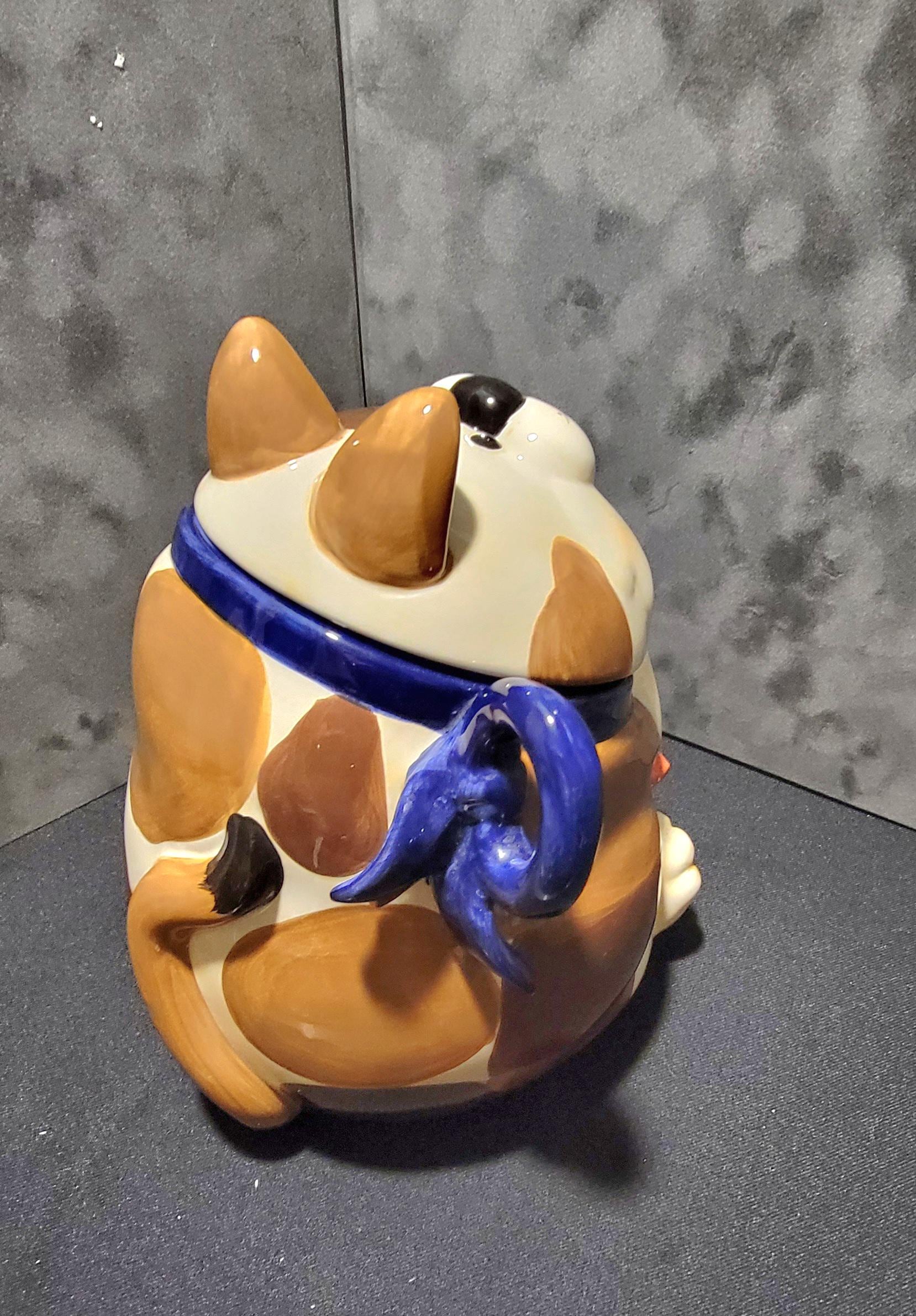 The hand-painted details, glossy glaze, and playful character make it a standout piece for cottagecore kitchens, farmhouse decor, or cat lover collections.