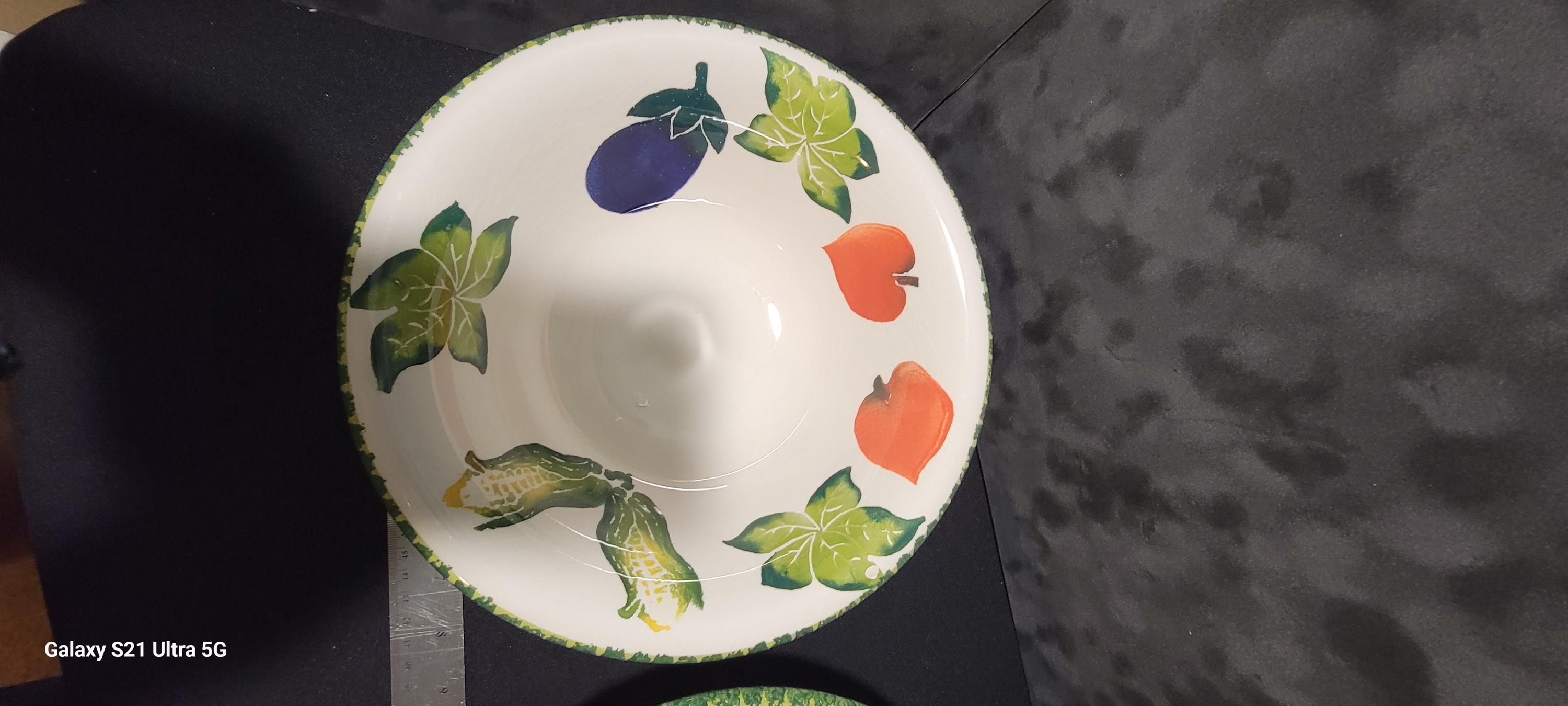 Add a charming touch of Italian farmhouse style to your kitchen with this beautiful set of two hand-painted ceramic vegetable bowls, made in Italy by Ceramica Artistica (CRM).