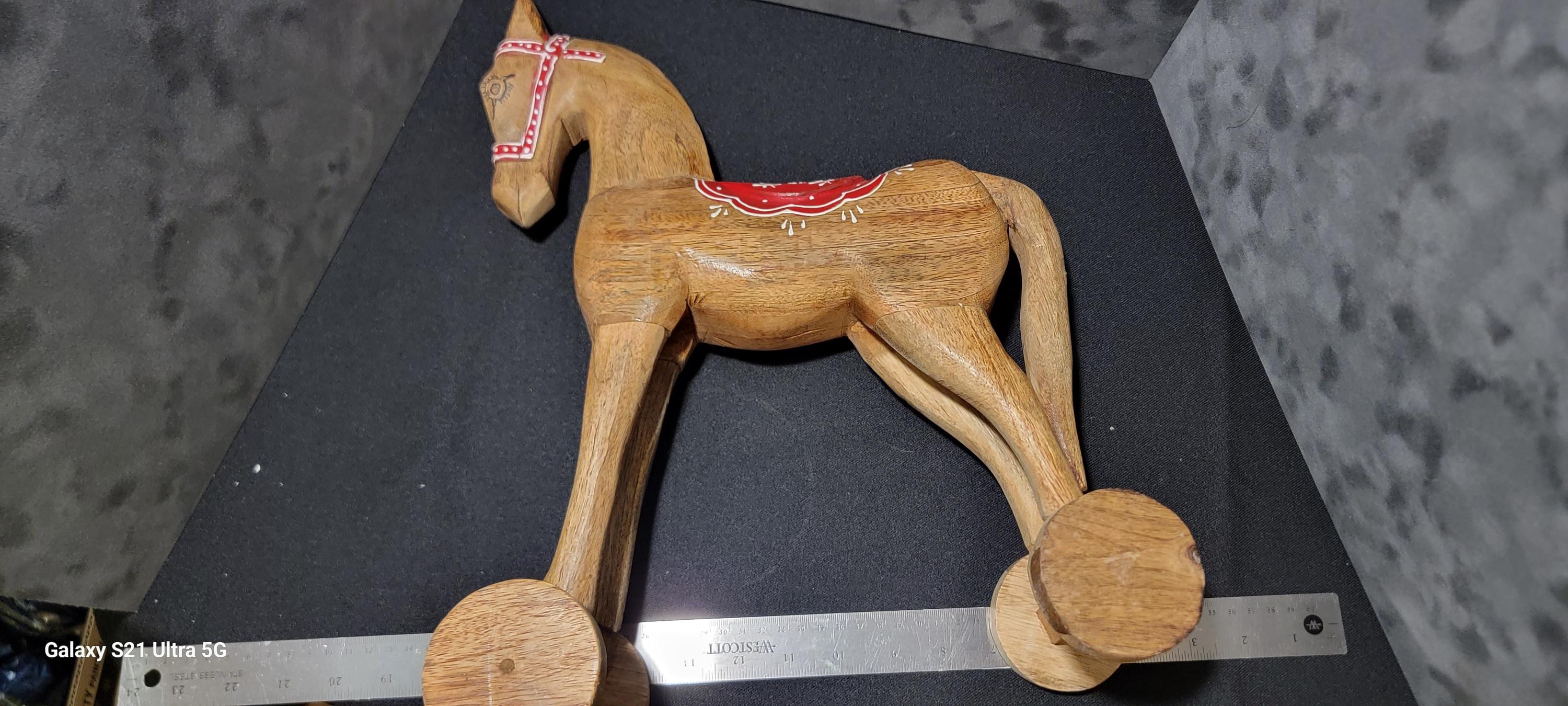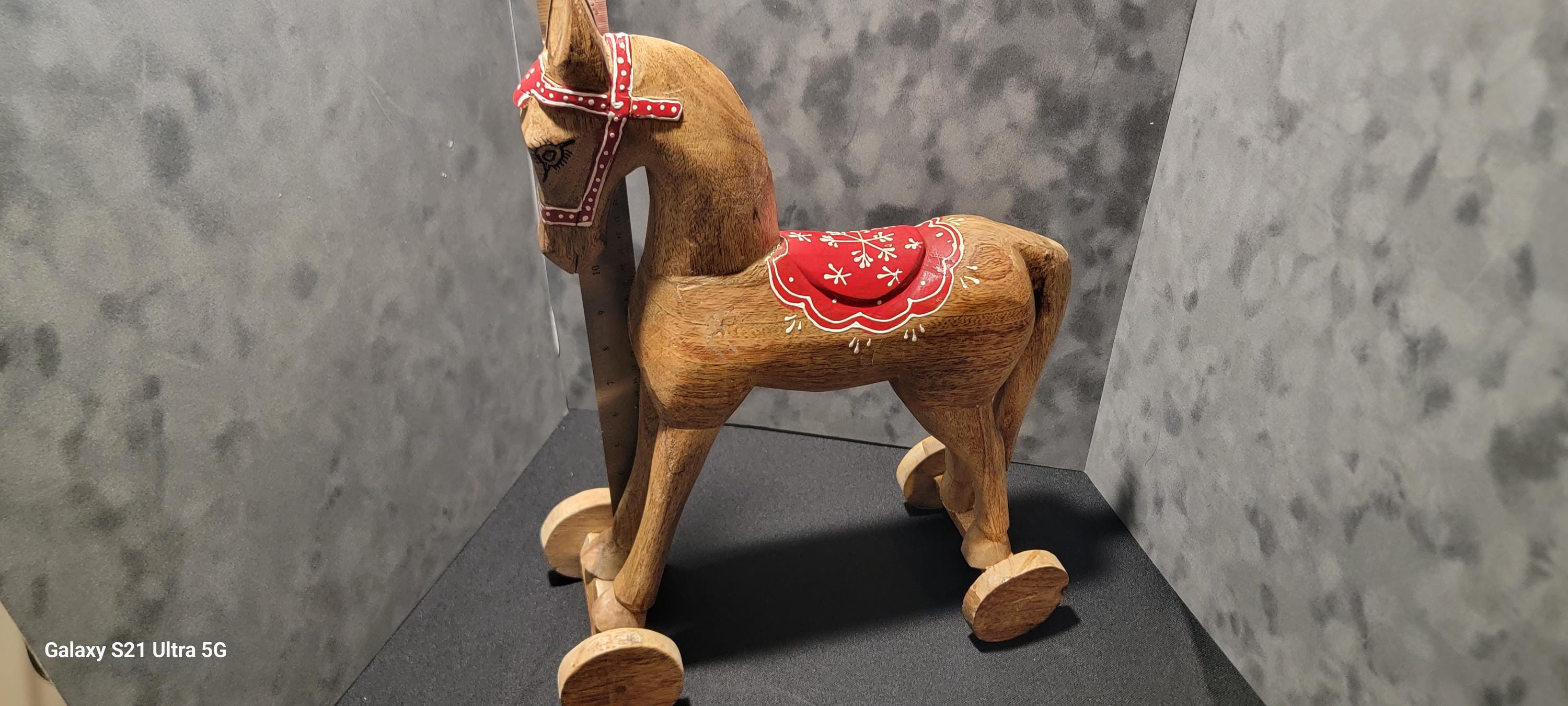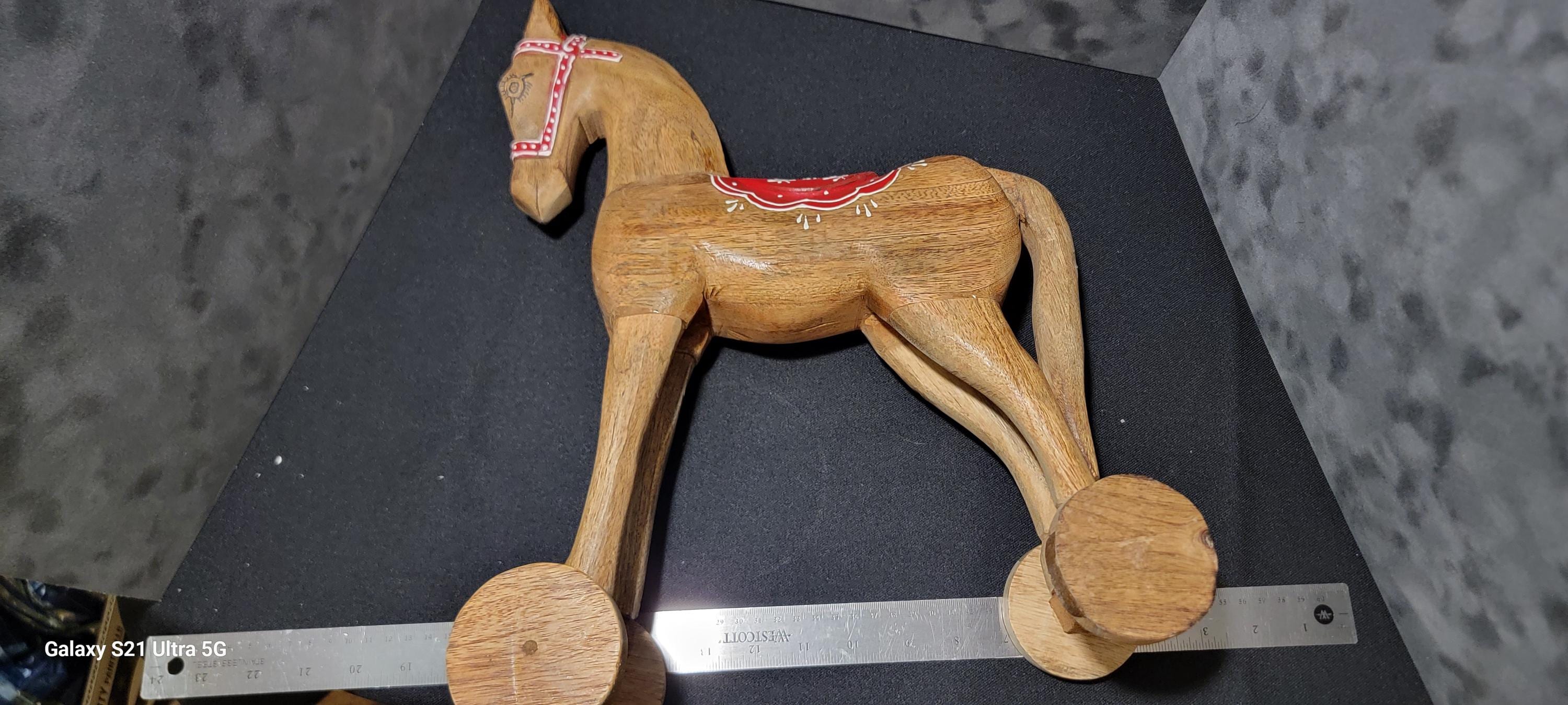 Whether displayed on a shelf, mantel, or in a child’s room, this wooden horse adds character and nostalgic charm to any space.