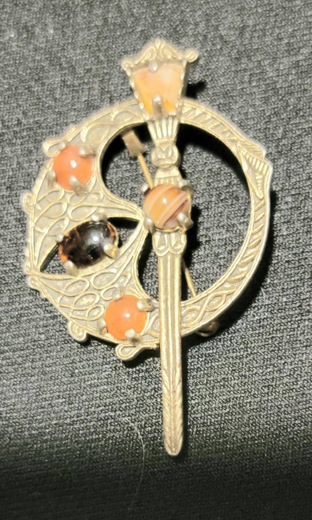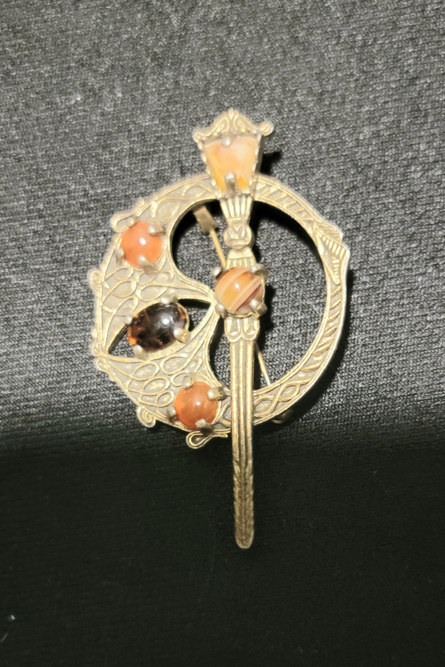 Stones: Glass cabochons (amber/orange tones)