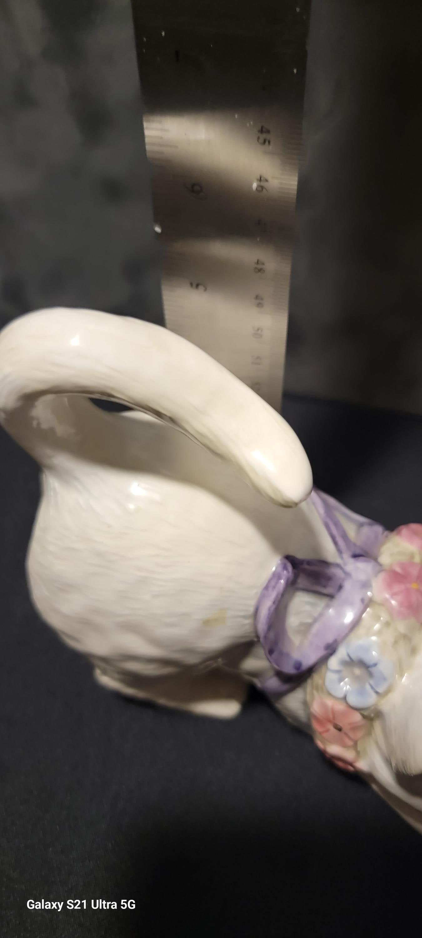 This piece has beautiful sculpted details including textured fur, expressive eyes, and a raised tail forming the planter opening.